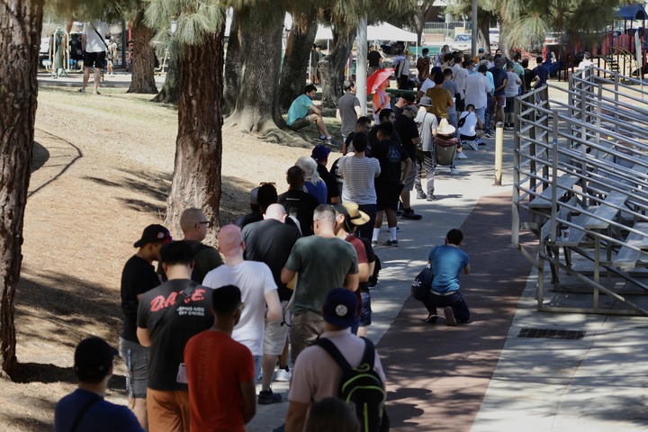 8月6日,人们在美国洛杉矶一处猴痘疫苗接种点排队。新华社发