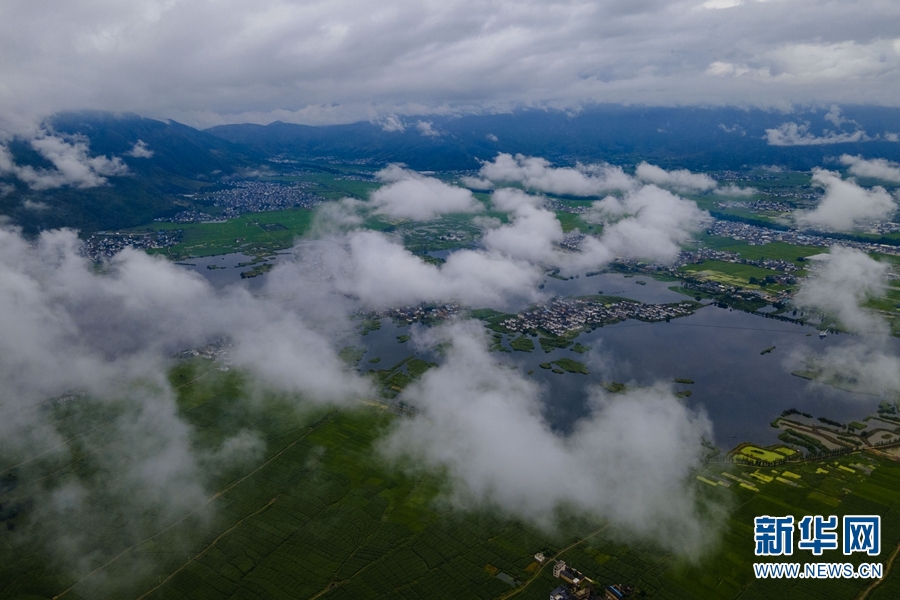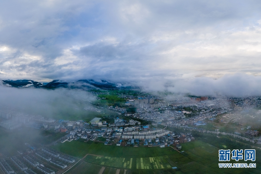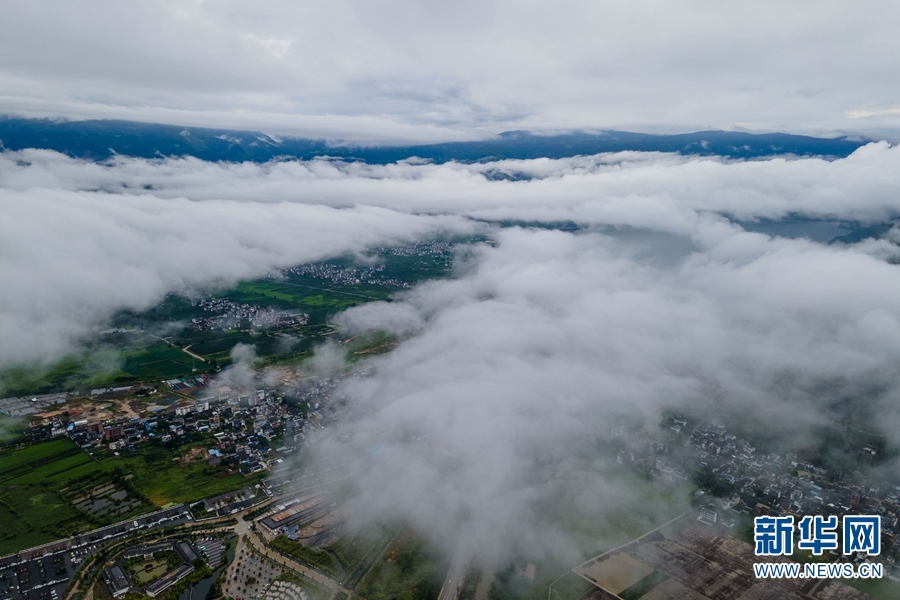 洱源县地处云南省西北部、大理白族自治州北部,是洱海的发源地。近日,雨后的洱源县上空现云海奇观,航拍视角下,云层随风翻滚流动,变化无穷,如梦似幻。流云之下,碧绿的田野、清澈的湖泊、错落有致的房屋,共同构成了一幅美丽的田园画卷。