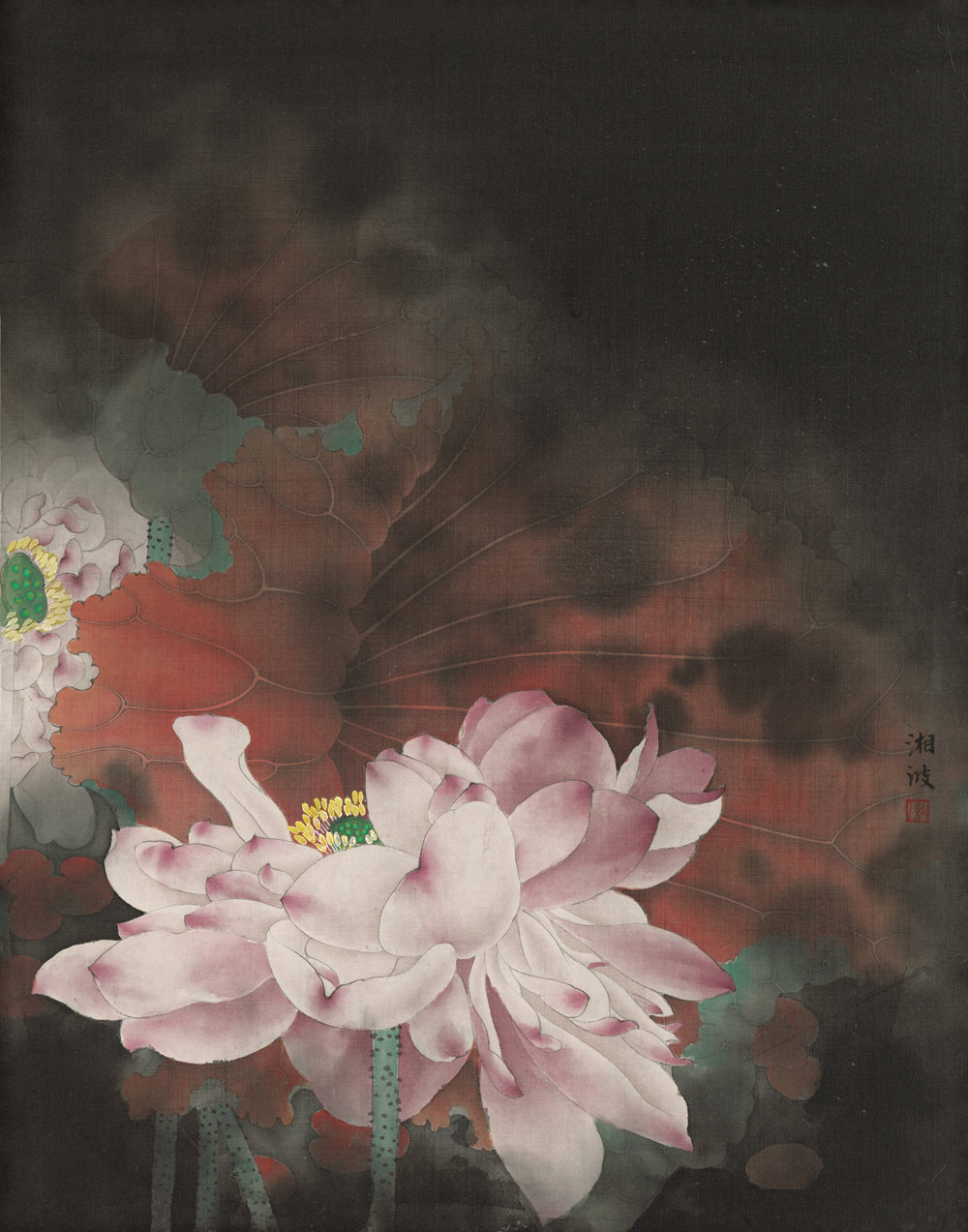 近期,“十香一脉——陈湘波花鸟画展”在广州十香园纪念馆展出。在本次画展上,陈湘波带来了他的数字版画《荷·晚晖》。该作品创作于2017年,从勾线到渲染都基于传统绘画的美术方式,但是整个画面呈现出来的情境又比较偏向现代风格。去年,在数字技术的改造下,《荷·晚晖》以焕然一新的动画面貌回归观众视野——水雾散去,叶影摇曳,荷花在光影中一开一合,颇具沉浸之感。