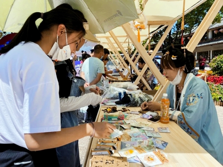 游客在国风盛典文创集市选购。 (李映芳 摄)