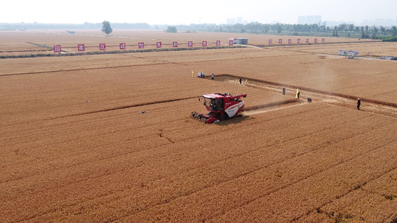 在河北省辛集市马兰农场,小麦正在收获。受访者供图