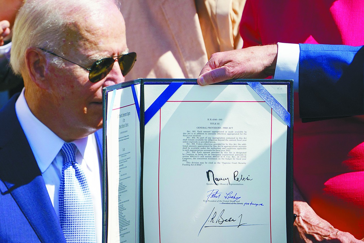 当地时间8月9日,美国总统拜登在白宫签署《2022年芯片和科学法案》。 (法新社)