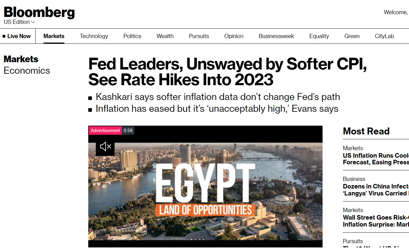 芝加哥联储行长查尔斯·埃文斯当日则在另一个活动中对最新的CPI数据表示欢迎,但他补充说,通胀率仍然“高得令人无法接受”。他表示,预计“我们将在今年剩余的时间和明年提高利率,以确保通胀率回到我们2%的目标”。