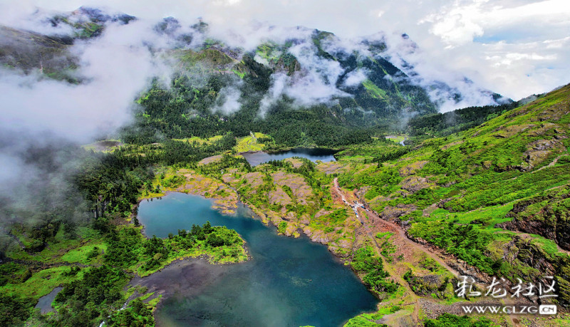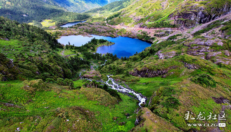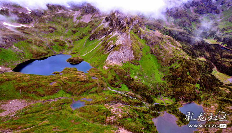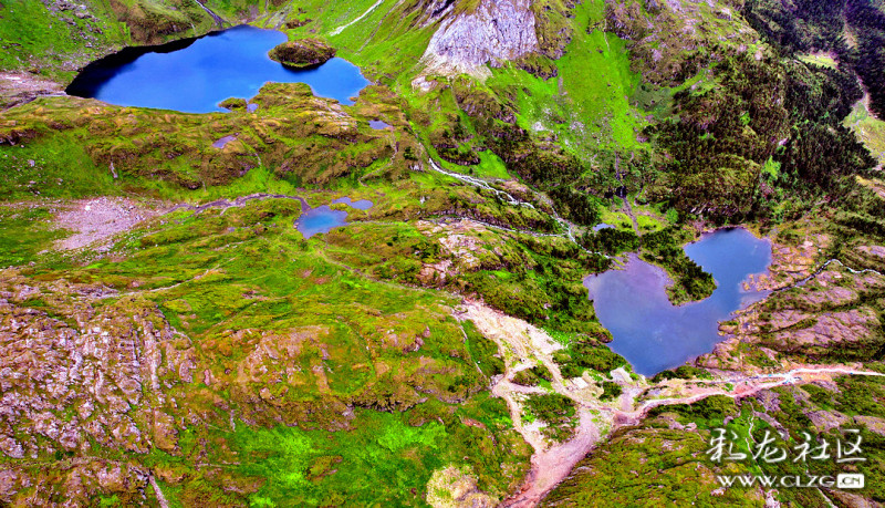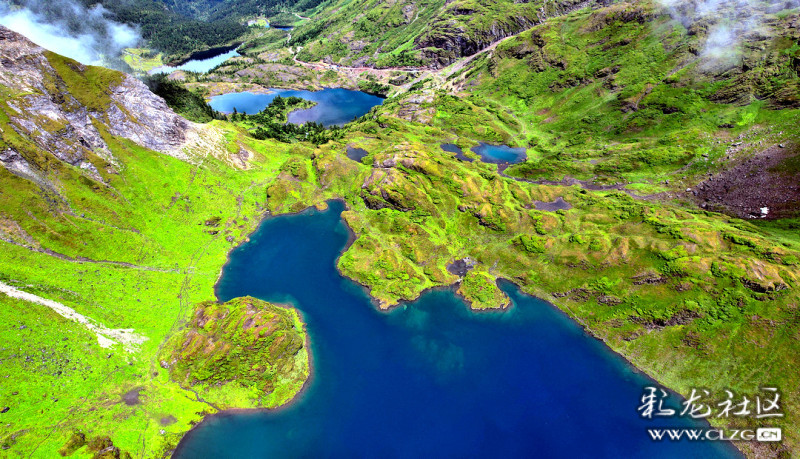 空中俯瞰,星罗棋布的湖泊,像月牙像明镜,湖泊里清澈见底的是雪山融水和深山里的泉水。