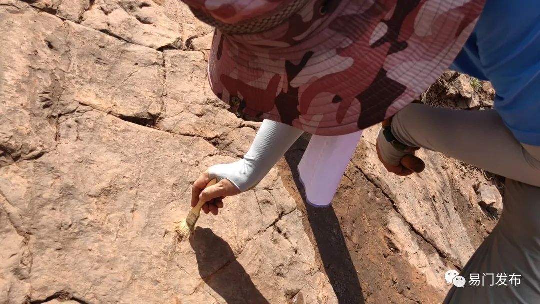 考察现场,专家团队通过对出现足迹片区进行清理及标记,对已暴露的恐龙足迹及其岩层层面进行了详细研究,并利用无人机等手段记录了足迹状况。