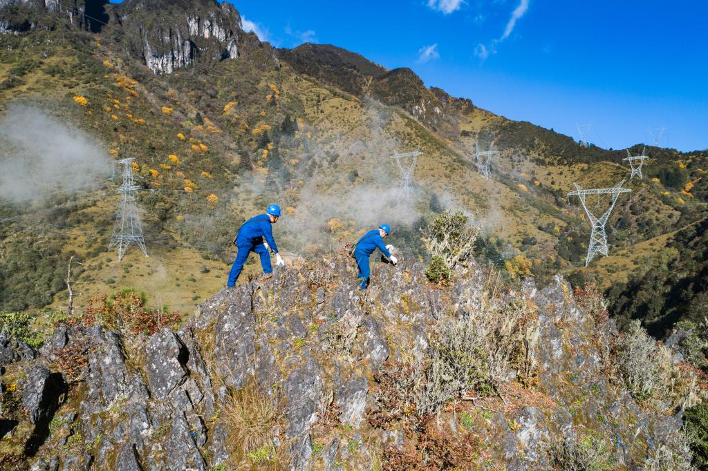 总装机840万千瓦的锦屏水电站将雅砻江滔滔江水转化为清洁的电能,通过7条500千伏超高压线路送到西昌锦屏换流站,再通过800千伏特高压锦苏线送往2059公里外的苏州同里换流站。有了这么一群不畏艰辛、战天斗地保供电的巡线工,为华东地区生产生活用电提供了稳定的保障,让雅砻江的清洁能源助力千里之外的减碳排放。