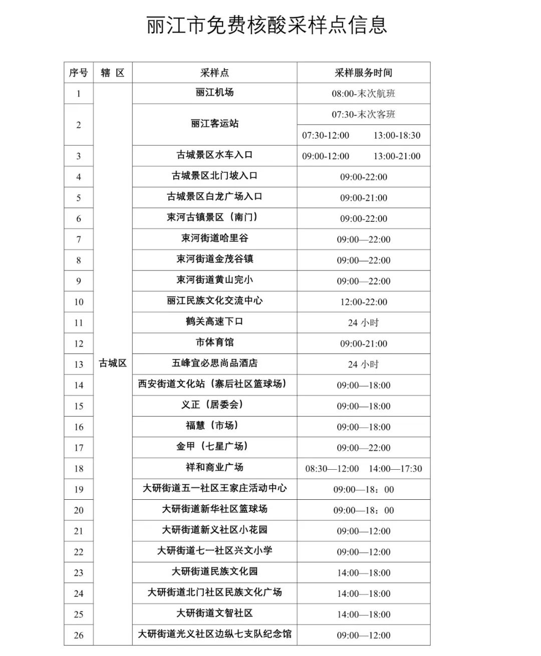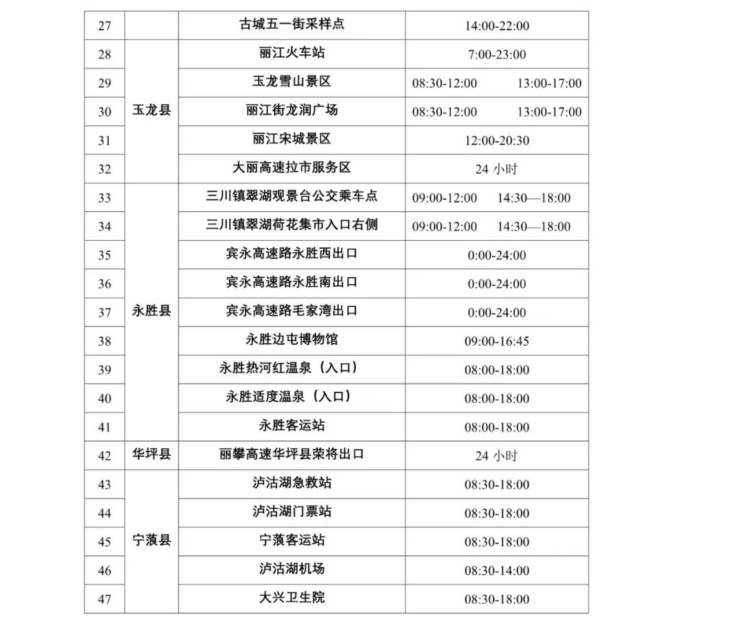 附件:丽江市免费核酸采样点信息
