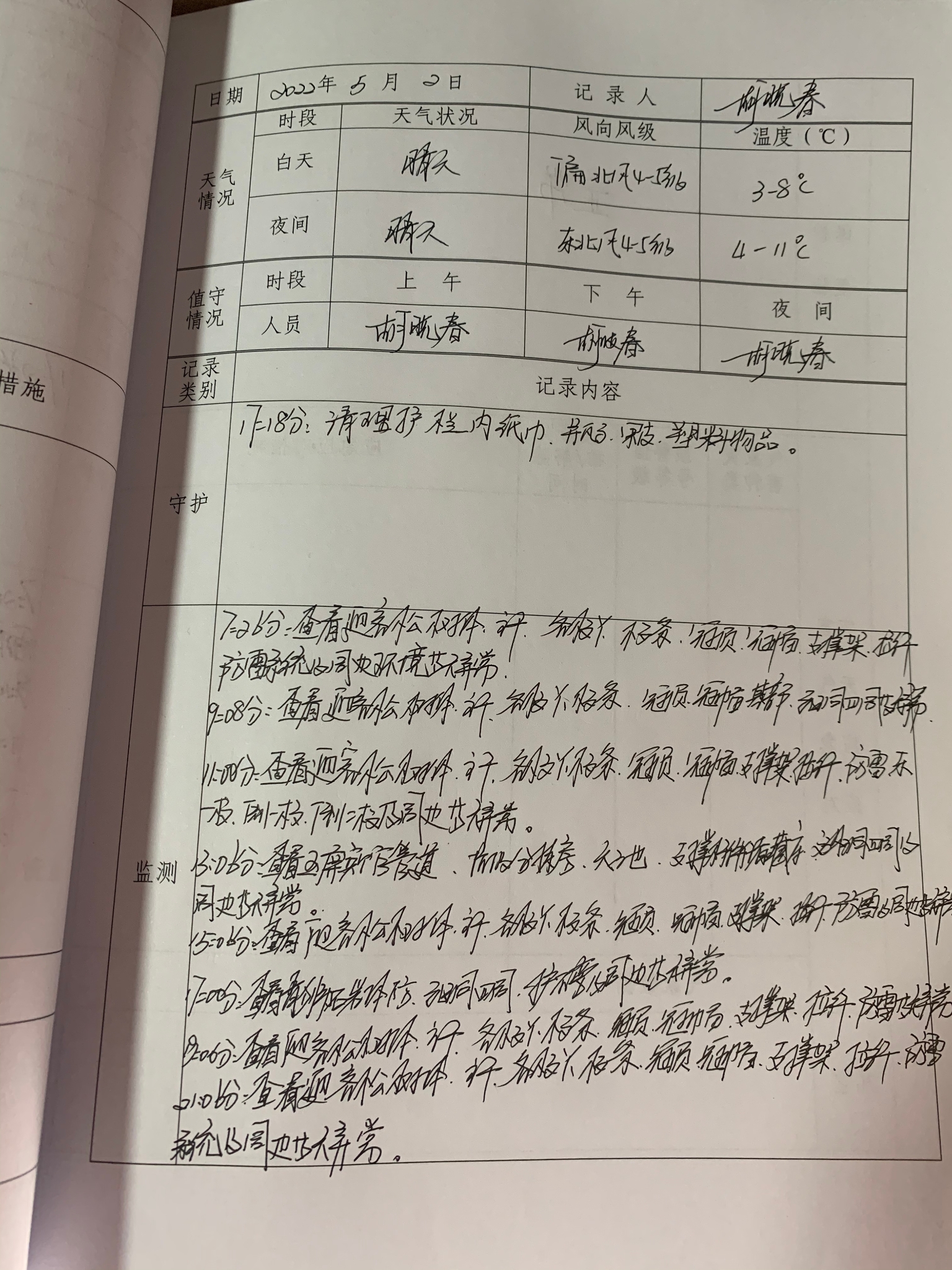 胡晓春的当班日记。 汪瑞华 摄
