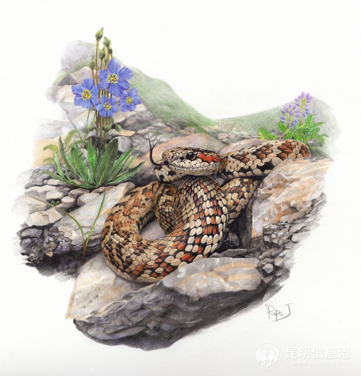 丁弋,红斑高山蝮,纸本彩铅,31.9 x 28.3cm,2019
