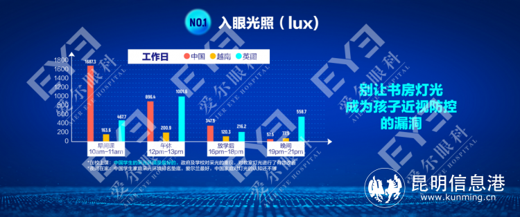 近日,爱尔眼科视光研究所与中南大学爱尔眼科学院联合发布了《中国儿童青少年近视防控大数据白皮书》(以下简称《白皮书》)。据了解,基于此前爱尔眼科启动的“全球近视眼大数据多中心研究”项目,利用云夹,《白皮书》采集了中国、越南、英国三国6-9岁低年级学生的近960万条有效数据,并从阅读环境光照、用眼距离、持续近距离用眼占比及次数和高危近距离作业四个维度,对比分析了三国学生在校与在家的用眼行为与视觉环境。
