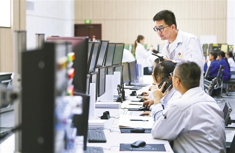位于神木高新技术产业开发区的神木富油能源科技有限公司,员工在监测设备运行情况。该企业主要从事煤化工前沿技术研发,是国家能源煤炭分质清洁转化重点实验室试验示范基地。