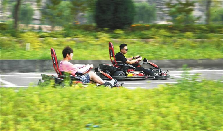 神木市一景区游客在体验卡丁车。神木市以强有力的政策,培育壮大各类市场主体促进旅游发展。