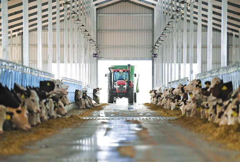 神木市澳牛牧业有限公司的现代化养殖车间。该公司对粪污进行无害化处理生产有机肥,所产有机肥全部用于饲草料种植,实现种养结合绿色循环。