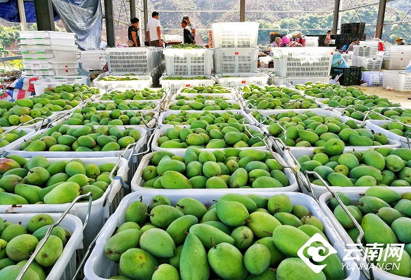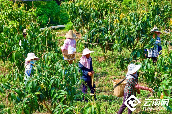 眼下,云南省弥勒市江边乡4.5万余亩芒果渐次进入成熟期,一个个绿里透红的“绿果果”垂吊在枝头,村民们忙着把采摘下来的芒果运到地头路边,分拣、过秤、包装、装箱发运,销往全国各地。