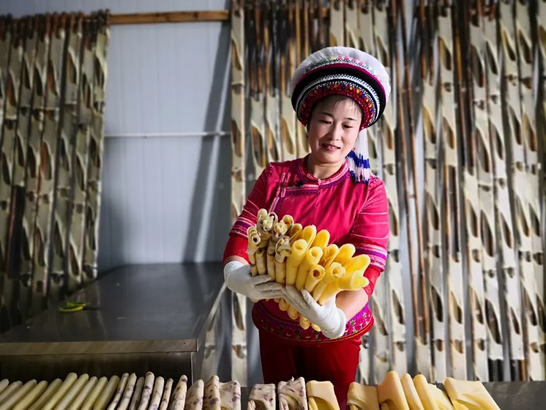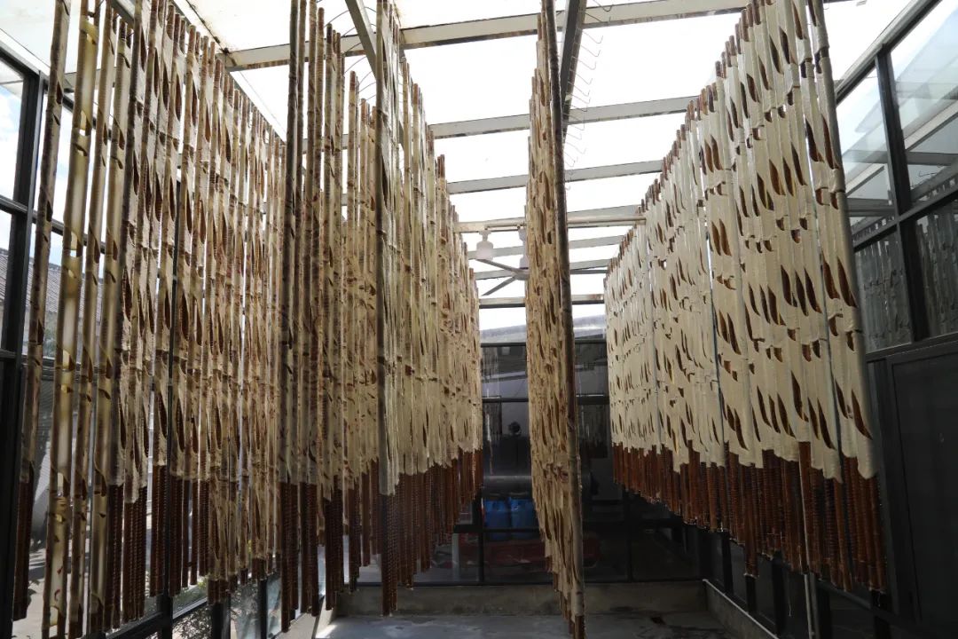 最好的乳扇只需要在木棍上风干1—2天即可食用,色泽油量,奶香浓郁,散发着勾人食欲的诱惑。