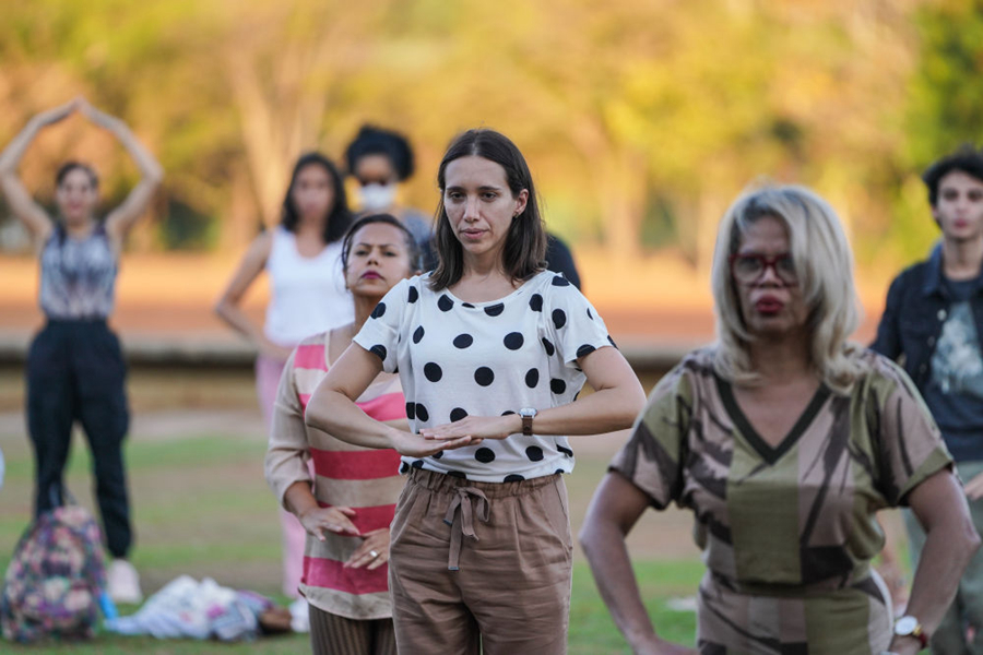 ↑8月13日,在巴西首都巴西利亚举办的“中国一瞬”文化体验周活动上,人们参加太极拳体验活动。新华社记者 王天聪 摄