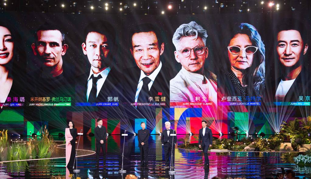 “天坛奖”国际评委会亮相第十二届北京国际电影节开幕式。新华社记者 陈钟昊摄