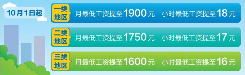 日前,经省政府同意,省人力资源和社会保障厅印发了关于调整最低工资标准的通知,决定从2022年10月1日起,调整全省各地最低工资标准。