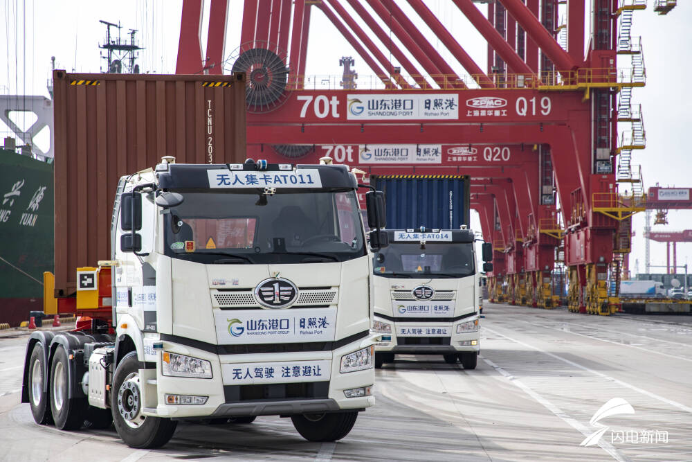 齐鲁网·闪电新闻8月17日讯 山东港口日照港全自动化集装箱码头,远控岸桥精准抓放、收放自如,30台轨道吊有条不紊、井然有序,一辆辆无人集卡往来穿梭,忙而不乱。跟大多数港口的自动化码头不一样的是,它是全球首个顺岸开放式全自动化集装箱码头,应用“北斗+5G”技术,推出了自主研发和集成创新的无人集卡调度系统等6项国产化、业界首创的科技成果,向全球港航业奉献了传统集装箱码头智能化改造的“山东港口日照港”方案,引领全自动码头建设进入了“低成本、见效快、可复制、易推广”的新时代。