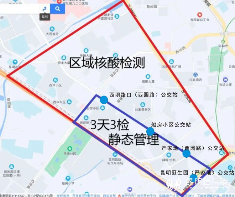 据悉,按照西山区应对新型冠状病毒感染肺炎疫情工作领导小组指挥部对棕树营街道、金碧街道、福海街道部分区域实施静态管理工作的要求,自2022年8月17日19:00时起,将对停靠以上区域内公交站台的公交线路采取临时取消停靠措施,具体如下: