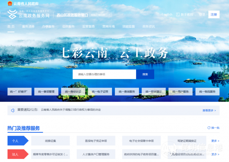五、倡议通过“网上办”“掌上办”“不见面审批”方式办理业务,避免人员聚集造成交叉感染。您可以通过以下两种方式,实现网上业务申报:方法一:打开浏览器搜索“云南政务服务网”或输入网址:https://zwfw.yn.gov.cn/portal/#/home,在左上角选择地区昆明市西山区,即可对政务服务事项进行网上申请和办理;方法二:从应用商店下载“一部手机办事通”APP或打开微信小程序搜索“云南一部手机办事通”小程序进入,注册并登录后,点击相应事项可进行线上办理。