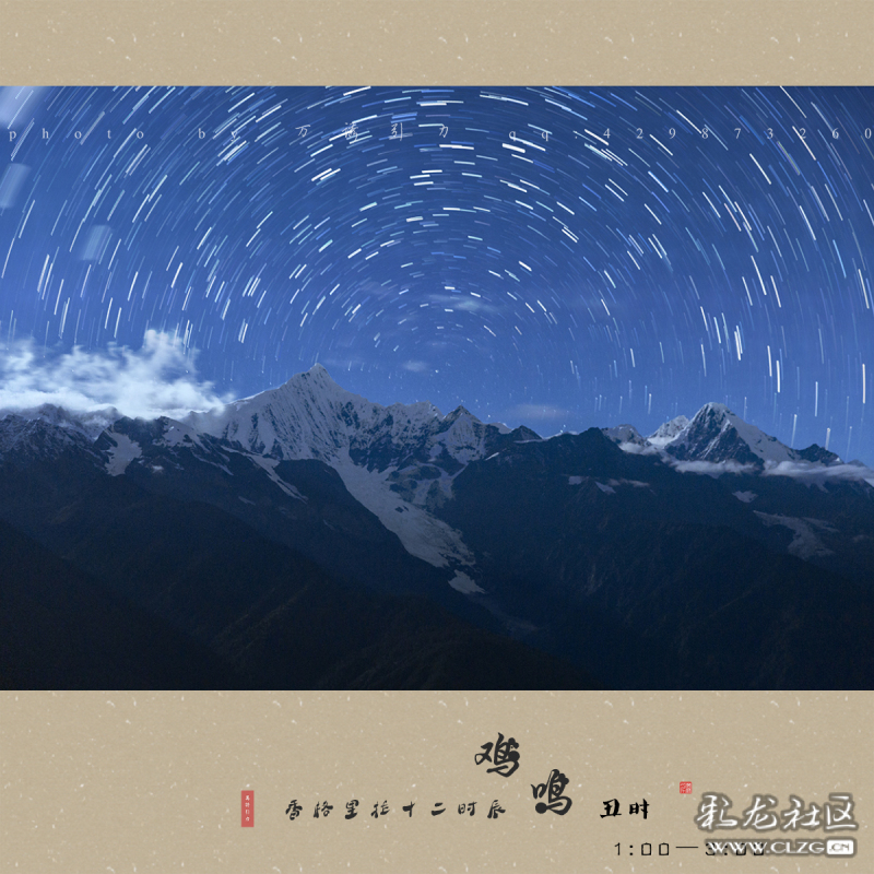 2、丑时,鸡鸣。此时的梅里十三峰,万籁俱寂,星空辉映着圣洁的卡瓦格博雪山,演绎着亘古的岁月变迁。在梦里继续转山转水,在梦里依然魂牵梦绕。