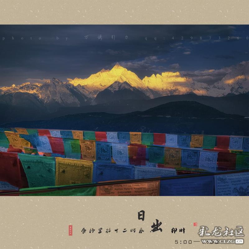 4、卯时,日出。伴着朝阳,旭日破空,经幡飞舞,梅里雪山迎着天际线,沐浴着霞光,香格里拉从宁静中醒来。