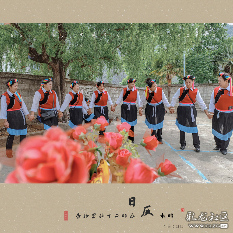 8、未时,日仄。热爱舞蹈的香格里拉人民穿上华丽的服装聚集在村寨前一起跳起锅庄舞蹈。幸福的藏族同胞正以饱满的热情,阔步迈进社会主义现代化建设征程中。
