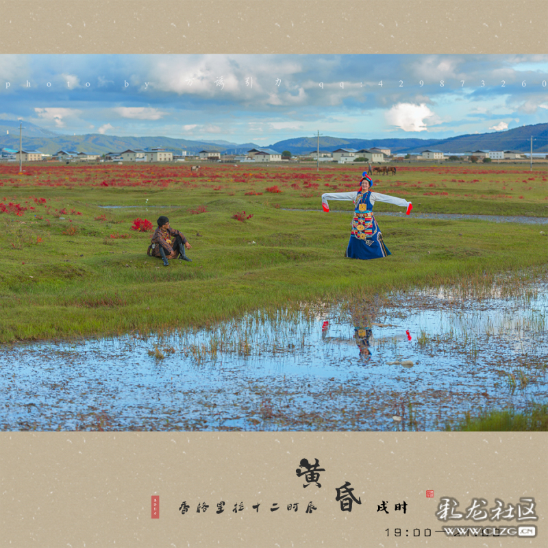 11、戌时,黄昏。蓝天白云之下,游走在小中甸多彩绚烂的狼毒花海中,不免让人有种如痴如醉的感觉。抬头仰望的是万里蓝天,低头细看的是青草野花,身旁是草原里的柔情水波。