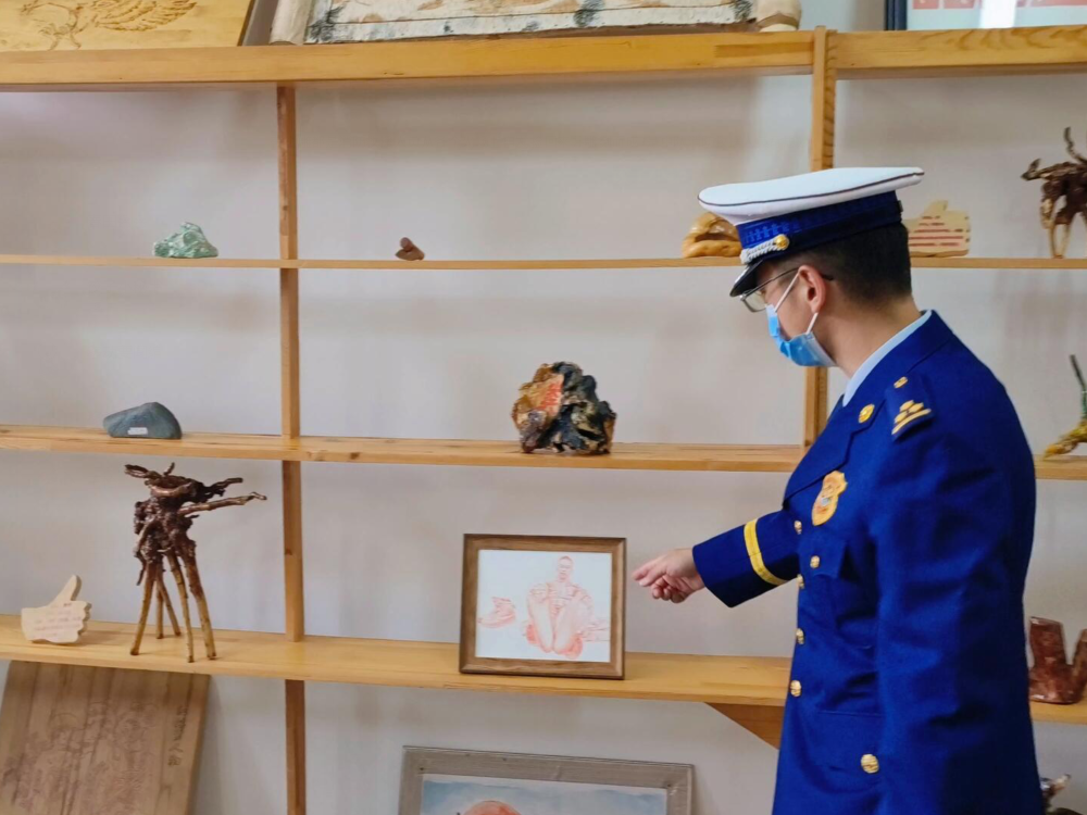 在原始林区、林海孤岛生活,需要一种乐观向上的精神。记者在奇乾中队文化展厅看到消防救援人员亲手制作的手工艺品,包括根雕、米画、烫画、剪纸等,种类繁多、样式精美,所有根雕都是消防救援人员从各个火场上自发捡回来并雕刻而成,是中队消防救援人员奇思妙想的外在展示,也是中队宝贵的精神财富。