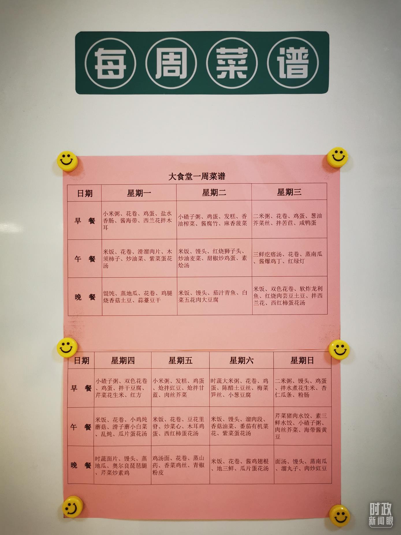 △牡丹社区大食堂的每周菜谱。(总台央视记者覃思拍摄)