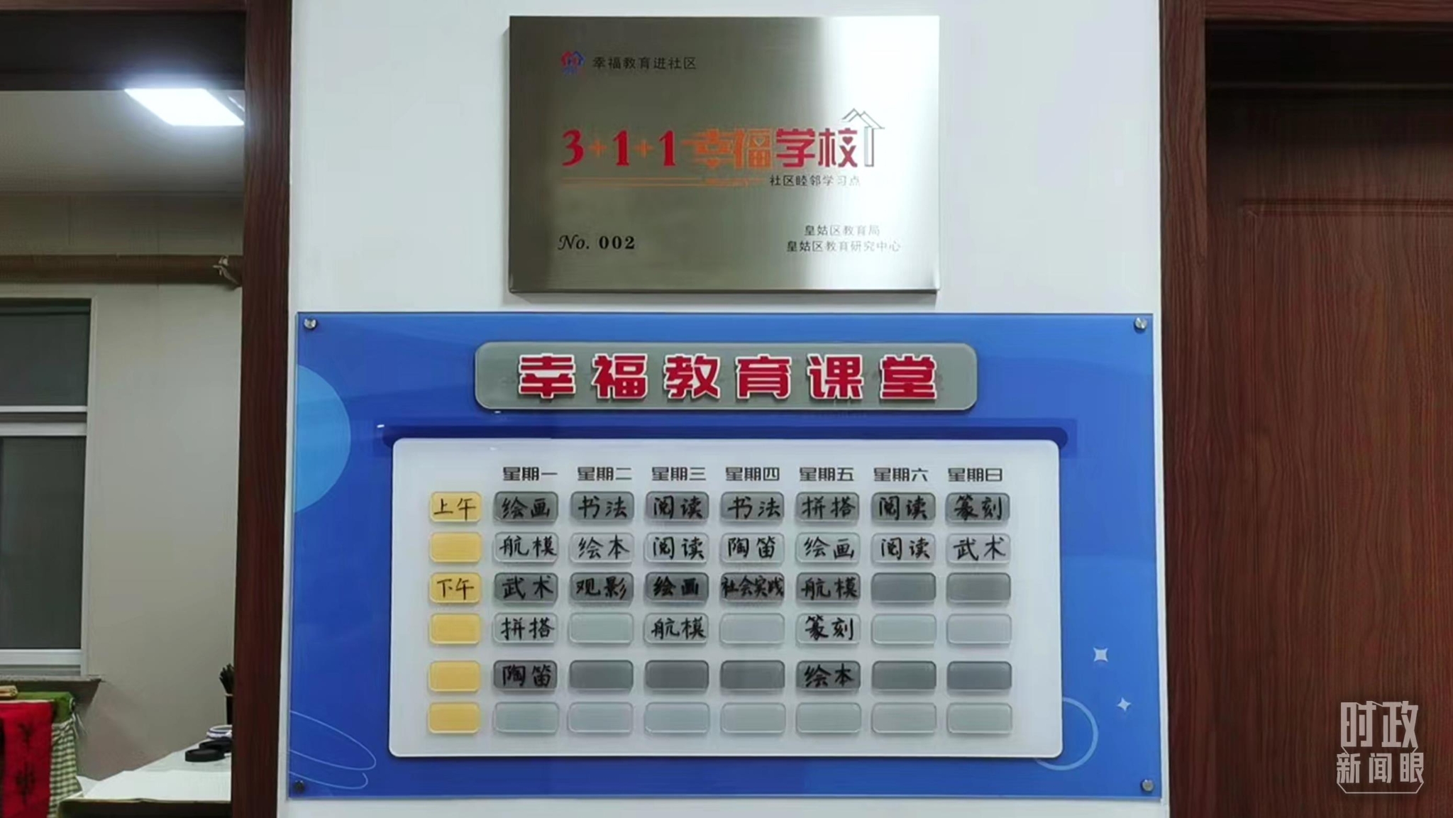 △牡丹社区的暑期“幸福教育”公益课堂课程表。(总台央视记者姚瑶拍摄)