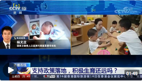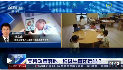 《新闻1+1》邀请国家卫健委人口监测与家庭发展司司长杨文庄,共同关注:支持政策落地,积极生育还远吗?