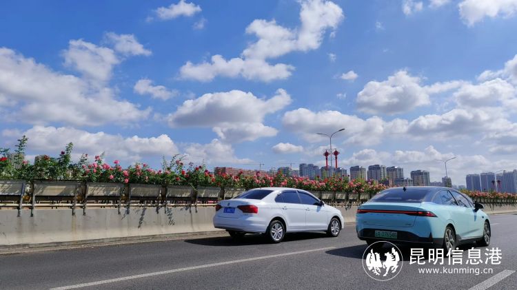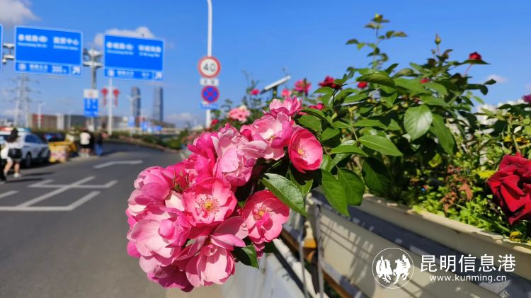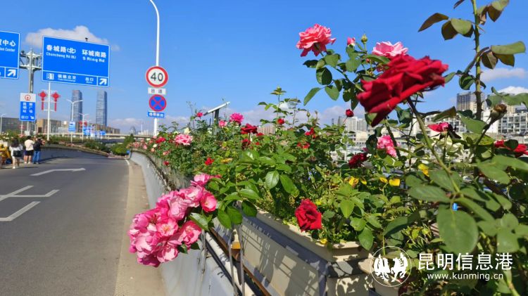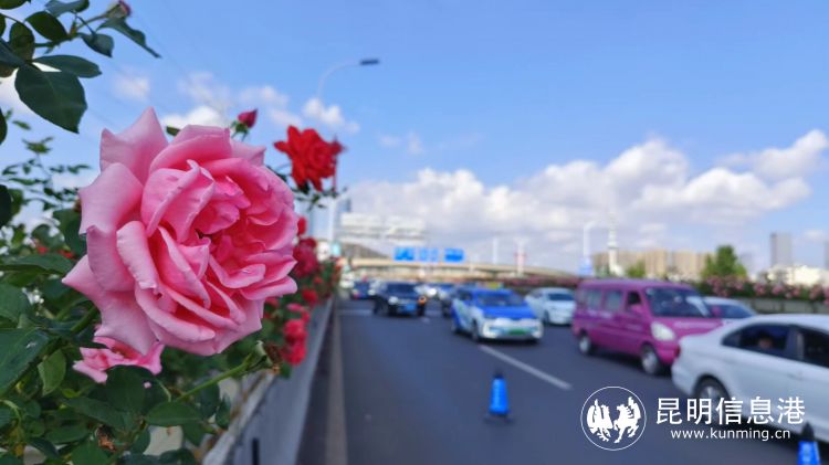 昆明信息港讯 记者杨雁 近日驾车行驶在昆明二环高架上,驾乘人员的目光不由自主地被一团团一簇簇的月季花吸引,姹紫嫣红的二环高架花带景观为昆明“颜值”再次加分,这已是今年月季花第二次进入盛花期。据统计:昆明市二环高架按单向条状花带计算,全线累计花带长度达到76公里。
