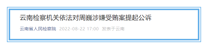 云南检察机关依法对周巍涉嫌受贿案提起公诉