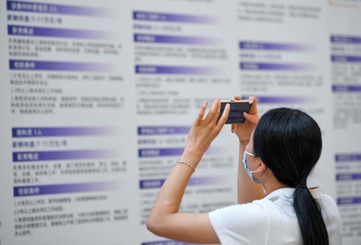 8月20日,求职者在招聘会现场拍摄招聘信息。 新华社记者 冯开华 摄