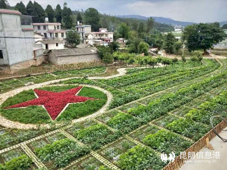 来到禄脿街道庄科村委会朱家箐小组,137块大小均匀、相互连接的生态菜园围成一个方正棋盘,棋盘中心是引人瞩目的“花卉五角星”,菜园中栽种有香葱、番茄、秋葵、土豆、辣椒、韭菜、西芹、茴香等应季蔬菜,每块菜地还插着一块红色的认养牌,蔬菜种苗采用老品种应季蔬菜,种植中不用化肥,不喷农药,完全施用有机肥,是真正的无公害“绿色蔬菜”,这就是禄脿朱家箐红色党建生态农业示范园。园间一条阶梯式瀑布河沟环绕周围,沟内睡莲旖旎,与各种无名绿植一起丰盈了清澈河水,小鱼、龙虾、泥鳅惬意其间,往来翕忽,与人相乐。