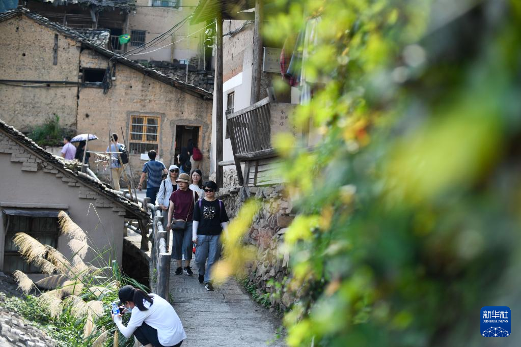 游客在浙江省松阳县四都乡陈家铺村游览(2020年7月17日摄)。新华社记者 黄宗治 摄
