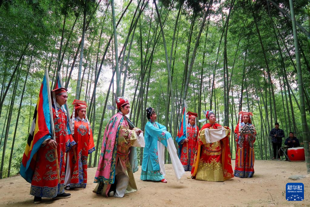 戏曲演员在浙江省松阳县叶村乡横坑村“竹林剧场”表演松阳高腔(2019年11月12日摄)。新华社记者 郑梦雨 摄