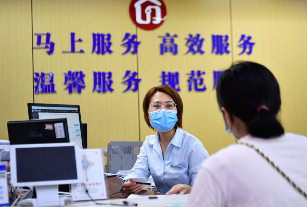 2020年7月15日,在福州市市民服务中心,市民(右)在办理住房公积金提取手续。新华社记者 魏培全 摄