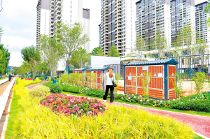 雨水被储存起来后用来滋养植物。 杨艳辉 摄