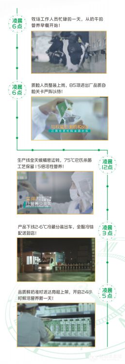 敢让雪兰“卷”起来的不仅是得天独厚的云南生态环境养育的优质牧场,更是一系列科学而完善的极质管理。一方面,雪兰通过改造自有供应链,打造城市型乳企的“鲜半径”,牧场至工厂的运输时效严格控制在2个半小时之内。另一方面,通过数字化赋能实现了各个环节的精准匹配和数据共享,产品全程2-6℃冷链运输储藏,每天以最快速度送抵货架,送到昆明人身边。从牧场到货架,“雪兰24小时鲜牛乳”不负其名,为昆明人带来极质新鲜的极鲜饮用体验!