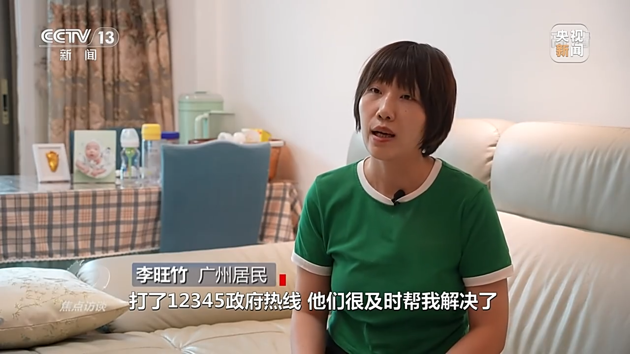 广州居民 李旺竹:打了12345政府热线,他们很及时帮我解决了。三人工作小组上门,先安抚了一下,安排的是预约的爱心专车,送到白云妇幼(医院)那里,在那里住了院,后面就顺利生了。