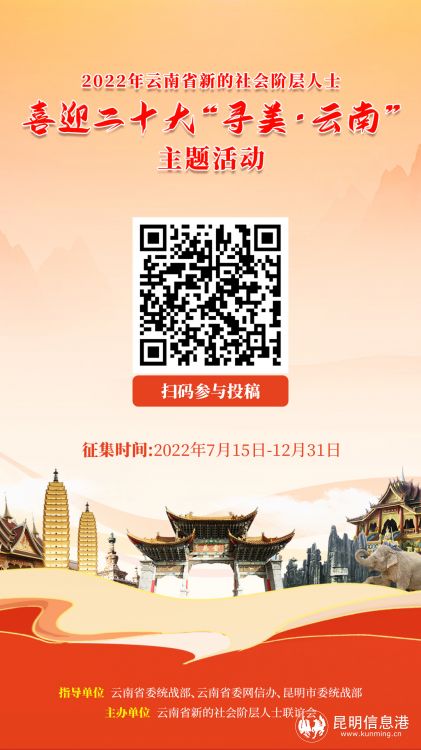 为充分展现近年来,云南经济、政治、文化、社会、生态文明各方面建设所取得的伟大成就,由云南省委统战部指导,云南省新的社会阶层人士联谊会主办的2022年云南省新的社会阶层人士喜迎二十大“寻美·云南”主题活动于7月15日启动。截至目前,活动共征集到投稿作品近千组,获全网近4000万人次关注。