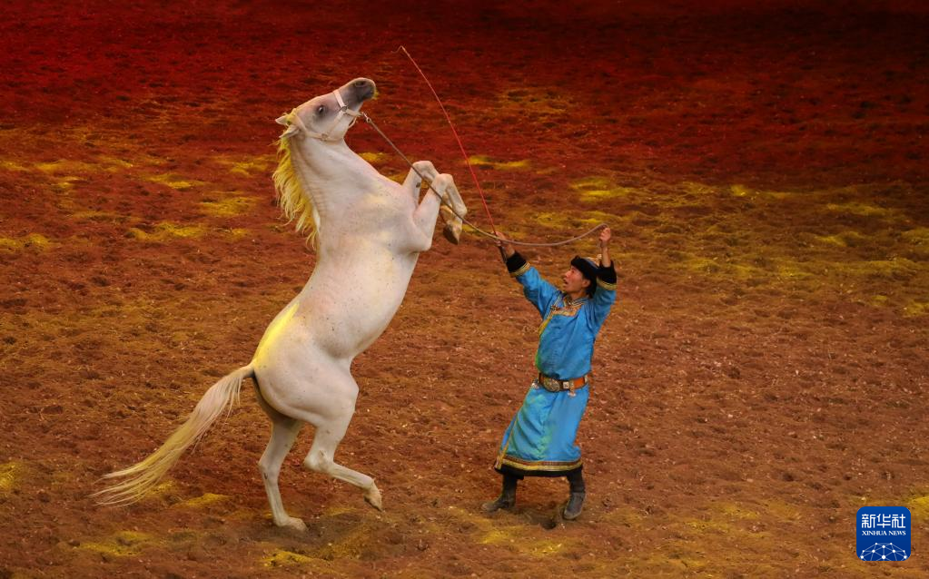 8月30日,演员在马舞剧《千古马颂》中表演。新华社记者 贾立君 摄
