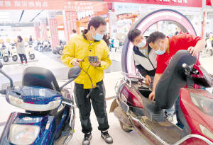 “路过这里时,看到有电动自行车‘以旧换新’补贴活动,我就立马回家把车骑过来,打算换个新的。”市民王女士告诉记者,她的旧车是超标电动自行车,而且已经骑了两年多,电池续航越来越差,仅用来接送小孩上学、放学都需要每天充电。经过半个小时的挑选,王女士加了1400元换购了一辆轻便型电动自行车,“趁着现在有补贴活动,赶紧换一个国标电动自行车,骑着也安全。”