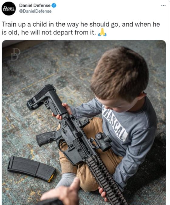 美国军火商发布的AR-15系列步枪广告,用儿童做模特。(资料图)