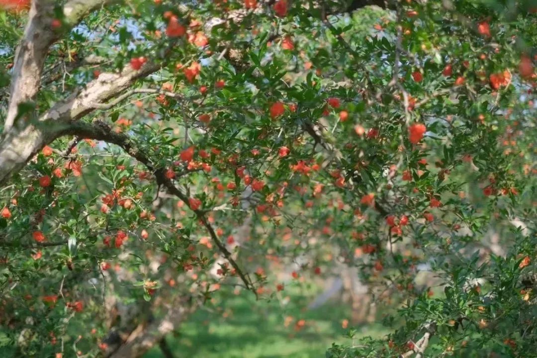 新安所这个坐落在万亩石榴园中的古镇,正四处弥漫着石榴的清甜气息,“姑娘花”正是石榴花。