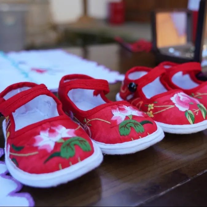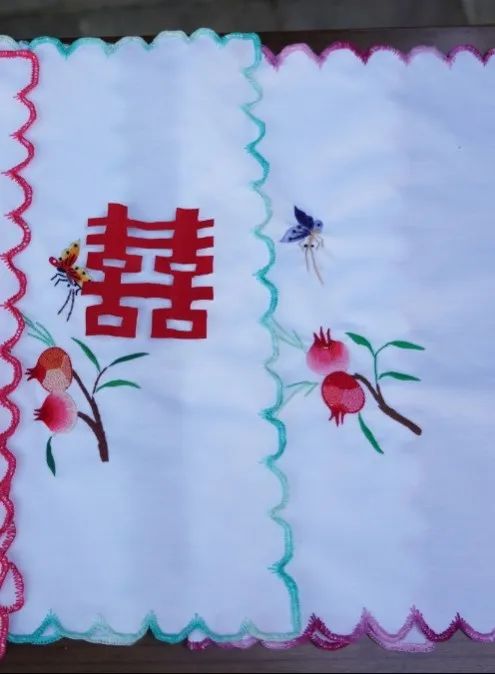在新安所,妇女有刺绣的传统,几乎家家都有刺绣装饰品,这些装饰品中,石榴刺绣成了必不可少的元素。自古风俗,结婚用的枕头、帐沿、门帘、小孩的周岁鞋、项圈、围裙等都是刺绣品。