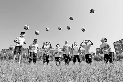 河南省焦作市温县第三实验小学学生参加足球训练。新华社发